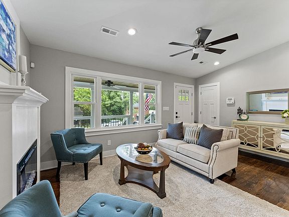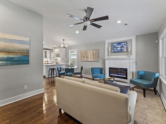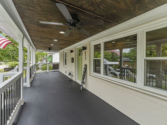 This exceptional residence presents a brick, ranch bungalow located just a stone's throw away from Downtown Raleigh. Greeting you is an enlarged front porch with dual ceiling fans, a beadboard ceiling, crown molding, & LED lights. Upon entering, you'll find a spacious open floor plan accentuated with Quartz countertops, brushed nickel fixtures, & stainless steel appliances. Crown molding further embellishes the interior, while the cozy electric fireplace provides a charming atmosphere. The property also boasts a tankless water heater, an expansive laundry/mudroom & a walk-in pantry. The house radiates a classic charm thanks to the red select hardwood flooring. Practical elements such as under-cabinet electric lights, a tile backsplash, & USB power ports enhance the living experience. The luxurious primary suite features a tray ceiling, dual custom closets, a luxurious bathroom that showcases exposed brick, & custom walk-in shower. The enclosed back porch, with its unique cathedral ceiling, seamlessly connects to the primary suite.