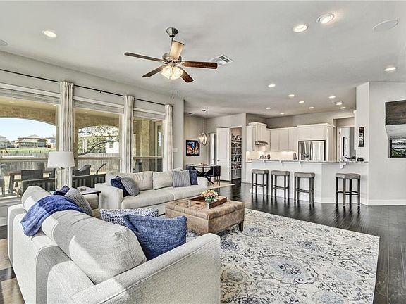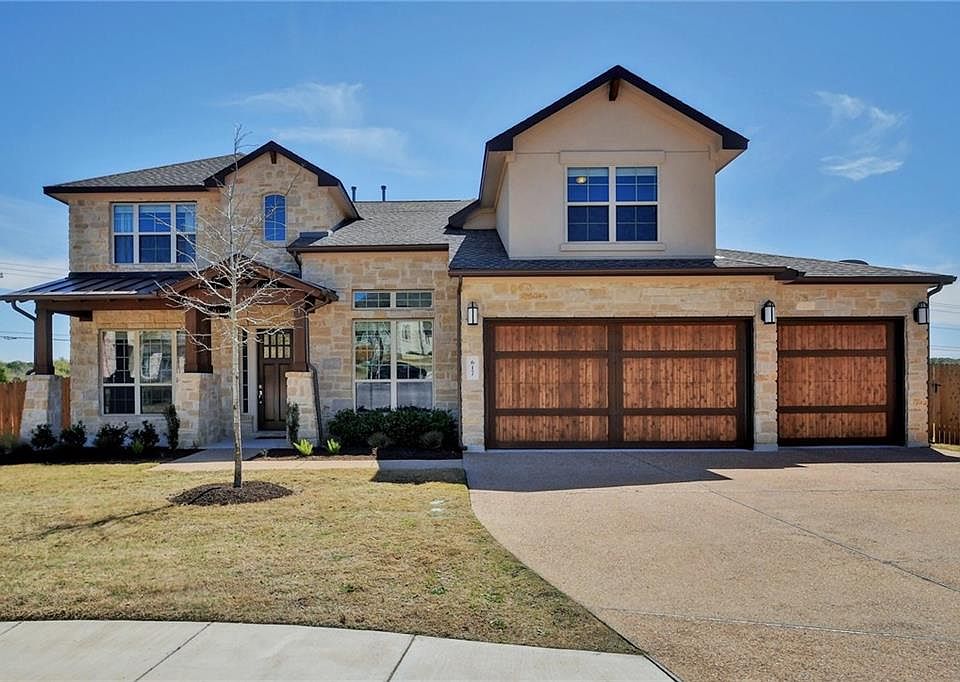 5 bdrms x 4.5 bathrms. LUXURIOUS HOME - BUILT OCT 2017! Breathtaking home with open floor plan, cathedral ceilings, and waterfall staircase. Fills with NATURAL LIGHT. Hardwood floors. 2 staircases. Bright kitchen w/Island and WALK-IN PANTRY. 2 ovens. 5 burner gas stove. Under-Cabinet lighting. 2 living. 2 dining. Fireplace. 3 car garage. UPGRADES! Hunter Douglas Blinds. MASTER: 1st Floor, floor to ceiling bay windows, jetted garden tub, separate shower, double vanity sinks, plus Hollywood lifestyle walk-in closet with custom high end Elfa storage drawers/shelves. Colossal covered back patio and yard. Backyard view of Brushy Creek trees. Community landscaping. Parks, playscapes, splash-pad, and trails throughout the neighborhood. 2 community pools. Basketball and volleyball w/ outdoor shower. Bike to Brushy Creek Lake Park - WATER ACCESS for Kayaking. Minutes to HEB, Walmart, Target, Costco, Lakeline Mall, Mandola's, eateries/shopping. Short drive to Domain, and Downtown Austin.