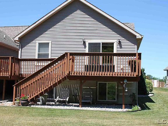Watch the wildlife & nature from your deck rather than watching the neighbors on their deck. Over 2400 square feet of finished living space in this immaculate condo, located in Buttermilk Condominiums in small town Tecumseh. This unit backs up to the wooded natural area and is definitely a PRIME LOCATION. Watch deer & other wildlife from windows on both levels & from the private deck. Many upgrades in this completely-finished condo, including a Great Room fireplace, slate flooring in the kitchen, dining, & laundry, and extra ceramic tile throughout in bathrooms, etc. Freshly painted w. premium carpeting & quality fixtures. All appliances remain, as well as sharp light fixtures & ceiling fans. Beautiful kitchen w. quality maple cabinetry, gorgeous slate flooring, & all appliances. Master Bd. w. sliding doorwall to deck, has private bath w. separate his & her vanities and ceramic-tiled, walk-in shower. Deck is accessible from Great Rm. & Master Bd. Lower level completely finished.