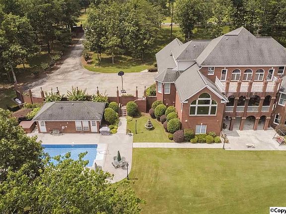 La Bella Vista Estate, the name says it all! Meaning "A Beautiful View", and what a view it is! A private drive leads to this Traditional-style Brick Pillared Three Story home Positioned nicely on 10 acres adjoining a private 28 acre lake . Boasting 5 bedrooms, 5+ baths with curved staircase and arched doorways. The details are endless with French Doors, Cathedral Ceilings, Crown Moldings, leaded glass, mood-setting recessed lighting, deluxe bathrooms with spa, game room and media room ready for entertaining in style......the list goes on and on. Outside enjoy terraces and porches, in-ground pool, hot tub and pool house. Call today for a Private Tour!