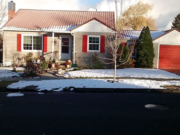 A 2 bedroom 1 & 3/4 bathrooms, 1240 sq. ft. Single car garage home with many updates, located on a large southside city lot. This home comes equipped with a fireplace wood burning insert that provides toasty heat during the winter. The home is also equipped with electric baseboard and wall heaters including a ceiling fan in the living room. Beautiful Bamboo floors in the living room, kitchen, and hall entry way. Ceramic tile in both bathrooms, laundry room, and dinning room, with carpets in the bedrooms. Crown molding decorates the living room and kitchen cabinets. A nice feature in the kitchen is an arched look through in front of the sink looking down into the large dinning room. Wainscoting in the living room and dinning room provides a special touch along with updated windows through out most of the house. The house has a metal roof in good condition. The yard has plenty of planted bulbs and landscapping for a variety of beautiful flowers in the spring and summer. There are fruit trees and garden spaces in the large fenced back yard. The built in wood rack holds up to 6 cord of wood.The rack is divided in the middle so you can rotate your wood. This house is conveniently located in a quiet south side neighborhood with schools, shopping, and restaurants close by. Appliances included in the sale of the home are a side by side fridge/ freezer with ice maker, kitchen range, and dishwasher.