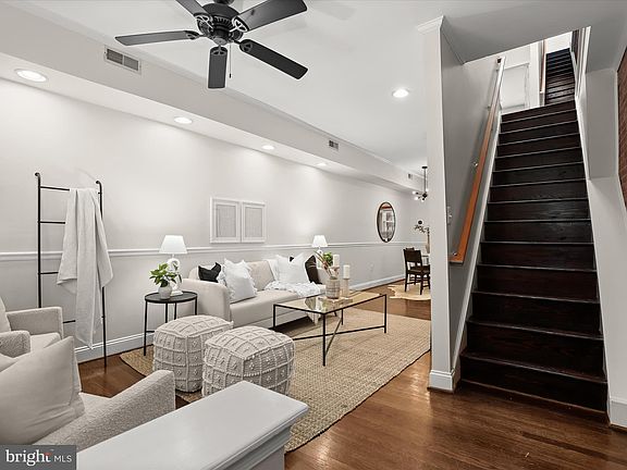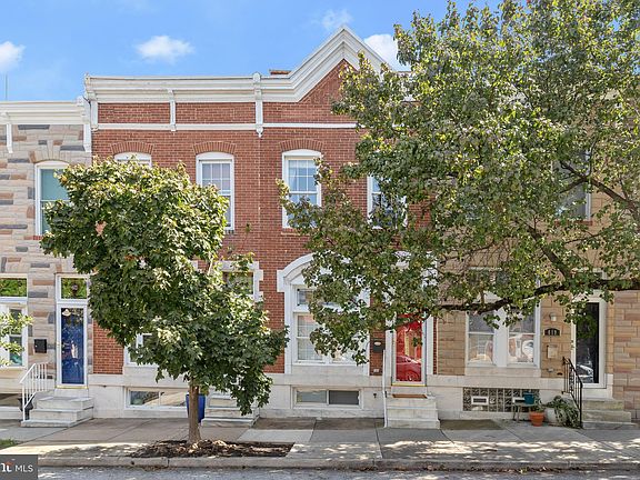 Welcome to this stunning Canton home, ideally situated near the vibrant amenities of Patterson Park, The Shops at Canton Crossing, Canton Waterfront Park, and Anchorage Marina. Enjoy quick access to the Inner Harbor, sport stadiums, the National Aquarium, and the lively nightlife of Fells Point. Step inside from the front door or full standard-sized parking pad, to find gorgeous stained glass windows that flood the living space with natural light. The open living and dining area boasts a charming brick accent wall, crown molding, high ceilings, gleaming hardwood floors, and a convenient main floor powder room. The kitchen is a chef's dream, featuring ceramic tile flooring, granite countertops, 42" custom cabinetry with pull-out drawers, a breakfast bar, sleek backsplash, stainless steel appliances, gas cooking, and a huge pantry. Retreat to the luxurious primary suite with vaulted ceilings, a spacious walk-in closet, ceiling fan, and an ensuite bath that offers a soaking tub and double vanity. An additional bedroom suite completes the upper level. The fully finished lower level provides endless possibilities, offering space for a family room, guest bedroom, and includes a cozy electric fireplace with dentil molding accents, a full bath, and a laundry room. Step outside to your rooftop deck, perfect for entertaining while enjoying sweeping views of the city. Convenient access to major commuter routes including I-695, I-95, I-83, and I-895 ensures easy travel. Don’t miss the chance to own this gem in the heart of Canton!
