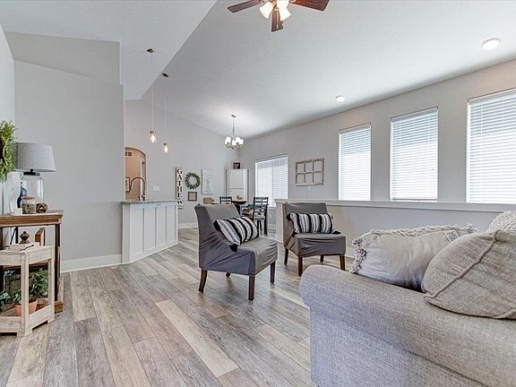 Stunning 5 Bed 3 Bath custom built ranch home backing right up to the water and located in Maize School District. Featuring a desirable split bedroom design with open floor plan, this home boasts a spacious living room with beautiful wood laminate flooring, vaulted ceilings and sparkles with tons of natural light. The dream worthy kitchen is fully equipped with nice appliances, granite countertops, and breakfast bar. Off the kitchen is separate main floor laundry room. Master suite features a view of the water, private bath with granite countertops, double vanity, walk-in closet and separate tub and shower. Downstairs you find a large family room with a gas fireplace, perfect for entertaining 2 additional bedrooms and another bath. Out back is a patio with a gorgeous view making it ideal for enjoying fall evenings or relaxing by your very own waters edge.