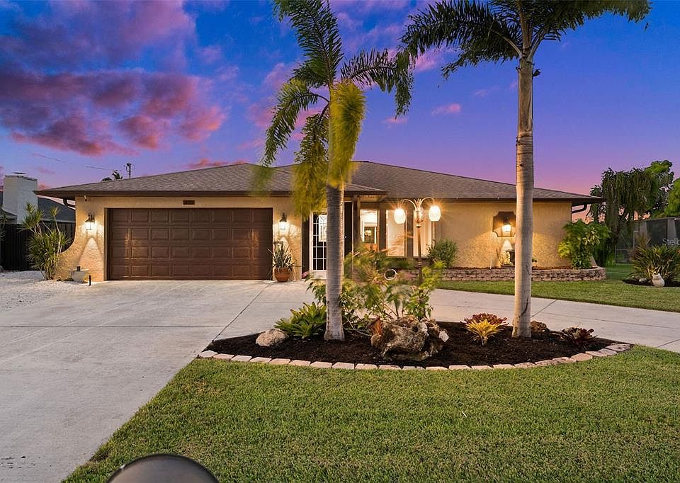 Welcome to your dream waterfront home in Cape Coral! This 3-bed, 2-bath home offers 1,693 sq. ft. of living space with direct Gulf access, perfect for boating enthusiasts. Located on a 130-ft wide canal, it features a private dock with captain's walk, two 10,000 lb. boat lifts, a 1,000 lb. jet ski lift, fish cleaning station, and a tiki bar with a glass-bottom floor. Relax in the private pool with a sun shelf and water features, or cook in the screened outdoor kitchen. Unwind by the fire pit or in the hot tub on the extended lanai. Inside, the kitchen features wood cabinetry, granite countertops, stainless steel appliances, and a new cooktop. The open living area is perfect for entertaining, with sliding doors leading to stunning canal and pool views. The master suite includes an updated en-suite bathroom, while two additional bedrooms share a bath. The garage offers epoxy flooring, built-in storage, and a mini-split A/C. Recent updates include a new water heater, a 2-year-old pool pump, newer A/C ductwork, and a 6-year-old roof. Enjoy extras like a full-home water filtration system, paved patios, and a storage shed. Conveniently located near dining, shopping, and entertainment, this home offers the ultimate Florida lifestyle. Schedule your private showing today!