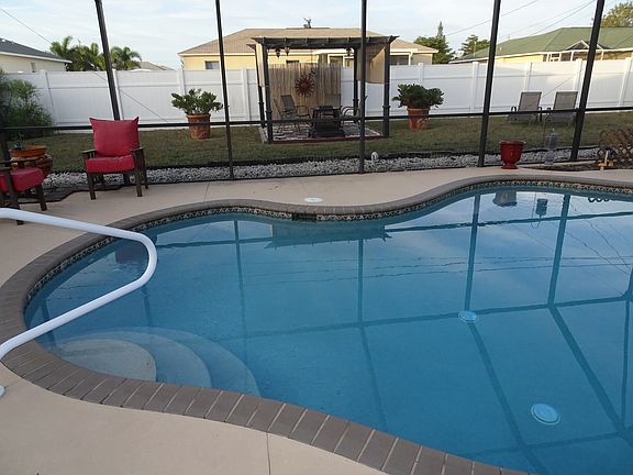 This 3 Bedroom 2 bathroom pool home is centrally located, near the intersection of Veteran's Pkwy and Skyline Blvd. The custom sports pool (deep in the middle to play volleyball) and large under truss lanai are perfect for entertaining. The large backyard is fully fenced with a white vinyl fence so you always have privacy. The newer kitchen has granite counter tops, custom cabinets w/ crown molding and stainless appliances.