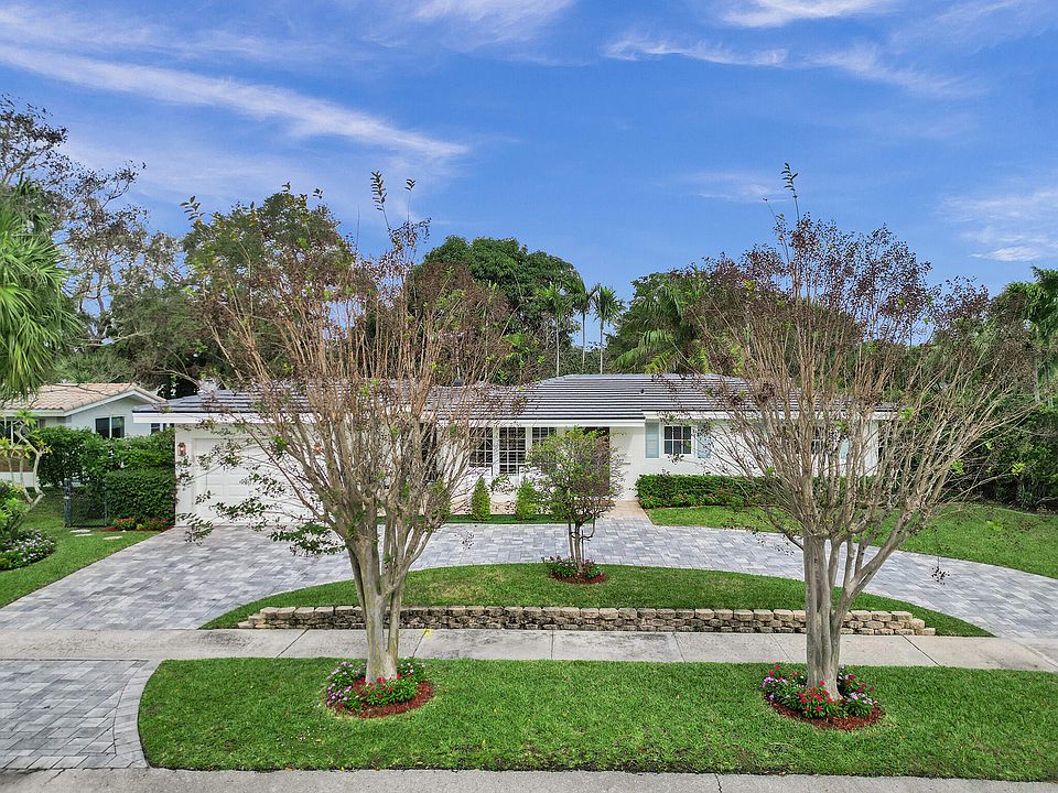 Step inside this oasis & notice the unique architectural design details. This home has been completely renovated from top (new tile roof 2022) to beautiful tile floors throughout, 3 full baths, large bedrooms with custom closets, & beautiful office space with tons of storage. The open floor plan is multi-functional & the kitchen is the hub of the home. Interior laundry room w/storage, 1 car garage w/newly coated floor & storage solution to maximize space (currently used as gym). The new front door, freshly painted exterior, & paver/circular drive make this home inviting. All impact windows & doors, 2 a/c units, alarm system & fully fenced yard. Freeform pool w/self cleaner & removable child safety fence. Turf in back & side yard, auto sprinklers for adda(tm)l landscape & paver patios