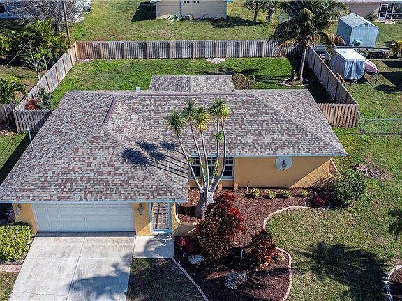 MOVE IN ready 3 bedroom 2 bath home located across from waterfront property is the perfect starter home or winter getaway. It has a brand NEW ROOF, IMPACT RESISTANT WINDOWS, and a newer A/C . The kitchen has granite counters with stainless appliances, and the split bedroom floor plan offers spacious bedrooms and closets. Tile and laminate floors From the dining room the pocket sliders open to a large, screened lanai that overlooks a spacious backyard. There’s plenty of room for a pool, a shed, or a nice play area for the kids and/or pets. There’s even a NEW privacy FENCE! Centrally located, you are close to shopping, restaurants, medical, and Sun Splash Water Park with easy access to Fort Myers via Hancock Bridge Pkwy- no tolls It’s also on city water and sewer with all assessments PAID and not in a flood zone!