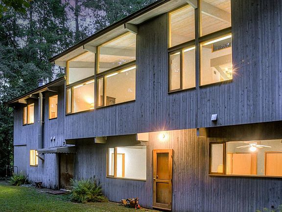 Step outside to your deck, just off the dining and kitchen areas, and immerse yourself in the sounds of nature—perfect for relaxing or entertaining. Don't miss this rare opportunity to own a centrally located, yet wonderfully private, mid-century modern retreat.
