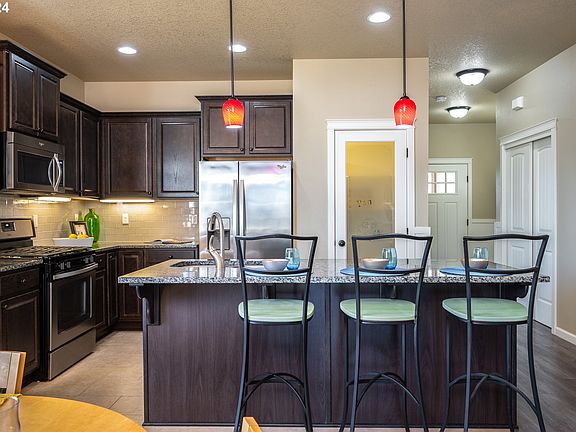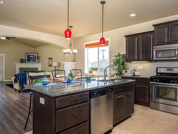 Welcome to your new home, a stunning sanctuary nestled in Forest Grove. This impeccable property is a haven of comfort and style, offering an unparalleled living experience. Step into luxury with 4 spacious bedrooms and 2 full baths, all conveniently located on a single level. Designed with accessibility in mind, this home boasts features tailored to meet your every need. Enjoy the breathtaking views of Mt. Hood and the picturesque valley from the large covered back deck, perfect for entertaining or simply soaking in the beauty of your surroundings or unwind on your large covered front porch. Meticulously landscaped, the backyard is a masterpiece with a soothing waterfall, enchanting low voltage lights, and complete fencing for privacy and security. With irrigation throughout the front and backyards, maintaining the lush greenery is effortless. Inside, vaulted ceilings and a gas fireplace create an inviting ambiance, while the gourmet kitchen is a chef's delight, equipped with slab granite counter-tops, gas appliances, and a walk-in pantry. Luxury vinyl plank flooring graces the main living areas, including the front bedroom, offering durability and elegance. The primary suite is a retreat in itself, featuring a tile shower with dual heads, a double sink, a soaker tub, and a spacious walk-in closet. Stay comfortable year-round with a gas furnace and new A/C system. Plus, a garden/tool shed with shelving, a workbench, skylight, and power adds convenience to your outdoor endeavors. Custom Roman shades throughout and appliances included. Located just minutes away from all conveniences and a short 20-minute drive to Hillsboro's high-tech corridor, this property combines luxury living with practicality and convenience. Don't miss the opportunity to make this your new home, where every day feels like a retreat.