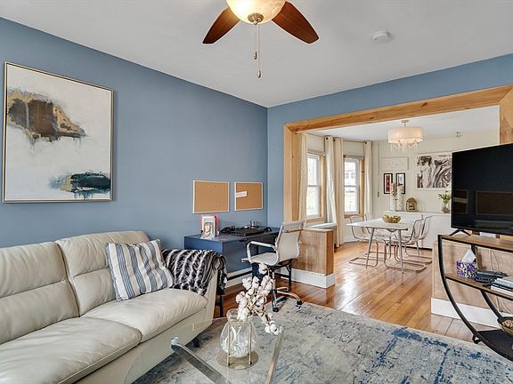 Discover a welcoming Roslindale three-bed, two-bath condominium in a charming two-family property on South St., abutting the Arnold Arboretum and nearby Roslindale Village commuter rail. Bright living room flows into the dining area and modern eat-in kitchen with granite countertops, wood cabinetry, gas range, wall oven, dishwasher, and breakfast bar. Two spacious bedrooms and sleek bathroom with tub on the first floor. Lower level offers potential homeowner to house hack with additional living space including a room, living area, modern bathroom with shower, and wet bar. Enjoy the private three-season porch, front porch, and shared back deck on an oversized lot. Includes one garage parking space and two outdoor. Private laundry hookups. Don't miss out on this versatile gem!