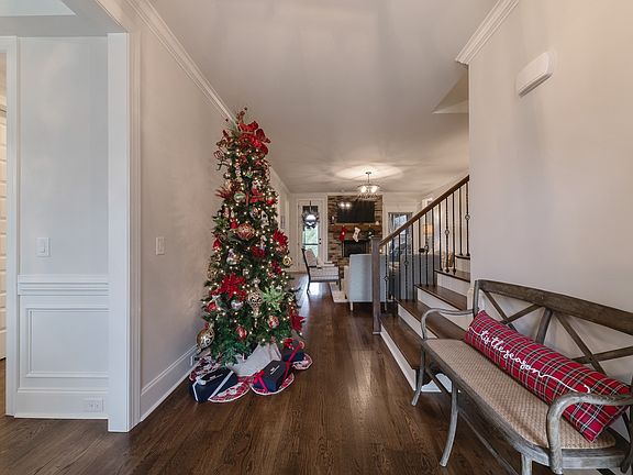 Absolute stunner w every upgrade! Double entry doors, upgraded lighting, crown, hardwood, tile, butler s pantry w/ wine fridge, large pantry, stainless app, dbl oven, gas cooktop, subway tile, quartz countertops, shiplap kitchen ceiling, custom cabinets & island w/ seating. Mstr bath has quartz, dbl vanities, tile shower. 8 ft interior doors, tiled guest baths, plantation shutters, stone fireplace, covered & screened porch w/ tile floor, fenced backyard looks over wooded farm. Community pool.