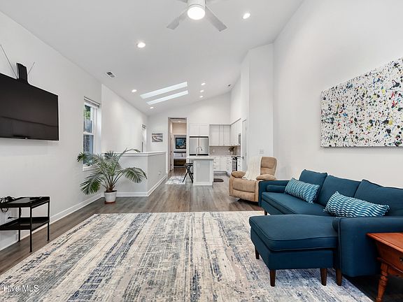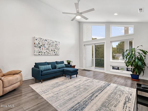 Welcome to a modern, bright, and well-maintained townhome, ideally located just steps from the Island Greenway in Carolina Beach! Inside, you'll find 3 bedrooms, 2.5 bathrooms, and over 1,500 sq ft. of functional and stylish living space. The entry level features a one-car garage, two bedrooms, full bath, and a convenient laundry area. Upstairs, enjoy tons of natural light and soaring ceilings in your open-concept living area. The kitchen includes a spacious island with seating, stainless steel appliances, and soft-close cabinets. The second floor's primary bedroom has an en suite bath with a tiled, walk-in shower and dual vanity. There is also a guest half-bath for added convenience. Outside, you can either enjoy your private balcony or fenced yard with low-maintenance landscaping and dedicated areas for grilling or entertaining. Don't miss this beautiful townhome located just minutes from the heart of Carolina Beach!