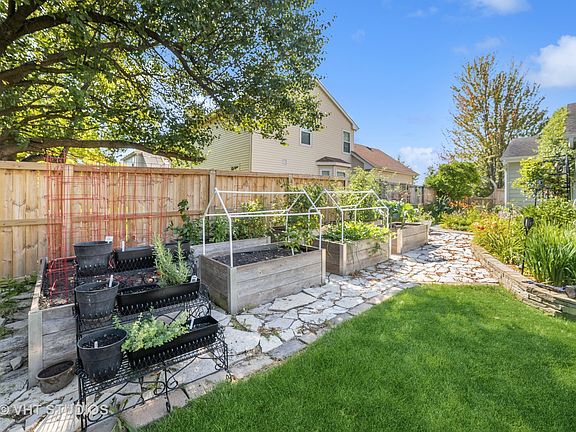 This home is so welcoming it shows all the love and care that the original owners have put in this home for over 32 years. Recently it was updated with granite countertops throughout the kitchen and the bathrooms all to match. The kitchen has french doors to the oasis getaway of an vacation paradise all in your own backyard. Stamped concrete patio (20x22) and sidewalk to front drive Lovely 4 foot above ground heated pool with new pool liner. A shed to store any of your tools and gardening items. 7 raised beds for flowers or a garden. So many lovely windows make this home light and bright with beautiful solid cherry hardwood floors in the family room,living room and dining room. You have the washer and dryer also on the main level. There are three very gracious sized bedrooms upstairs with ceiling fans. The master bedroom bathroom was completely remodeled four years ago with a custom bath with a pocket door, heated floor, towel warmer and spa shower from ceiling to floor for all you tall people. Now let's go downstairs to the unfinished basement where you can finish it off to your own wants and needs. There is also a crawl space with a concrete floor for storage. Off the entrance of the home is the two car attached garage that is heated, insulated, has a new garage door, cabinets, extra electrical outlets. Freshly painted inside and outside. New furnace 2022 and central air coil in 2023, Newer roof in 2019. All new light fixtures throughout the home. This home is located in a great location near a commuter train, expressway, shopping and restaurants, making it a perfect choice for anyone looking for convenience and accessibility. Don't miss out on this clean and well- maintained home just waiting for it's new family. The seller is hoping you can enjoy this secret year-round garden that now has thousands of perennials, starting with Lenten rose in the spring, hundreds of daffodils, crocus and Japanese iris, daylilies, iris, hardy hibiscus, through the seasons with red twig dogwood, fountain grass and burning bush for winter interest. Beautiful on a snowy night with a fire, or reinstall a hot tub, it's worth it! The gardens were planted to provide cover for birds, discourage mosquitos, and encourage pollinators. It works! The garden is productive and provides a display of butterflies, hummingbirds, bumble bees, dragonflies, etc. With the seven raised beds, three Pecan trees, two apple trees and a peach tree as well as the supplemental trellises, it gives enough food to take a healthy portion of the food budget away, if you plant well. The sellers favorite feature is the moon gate to their garden. The roof is ready for enough solar panels to power the entire house year round. We hope you enjoy the home as much as we have for the past 32 years. It is now time to make it your own home. Priced to Sell. Too many updates to list. There is a list in the additional information section.