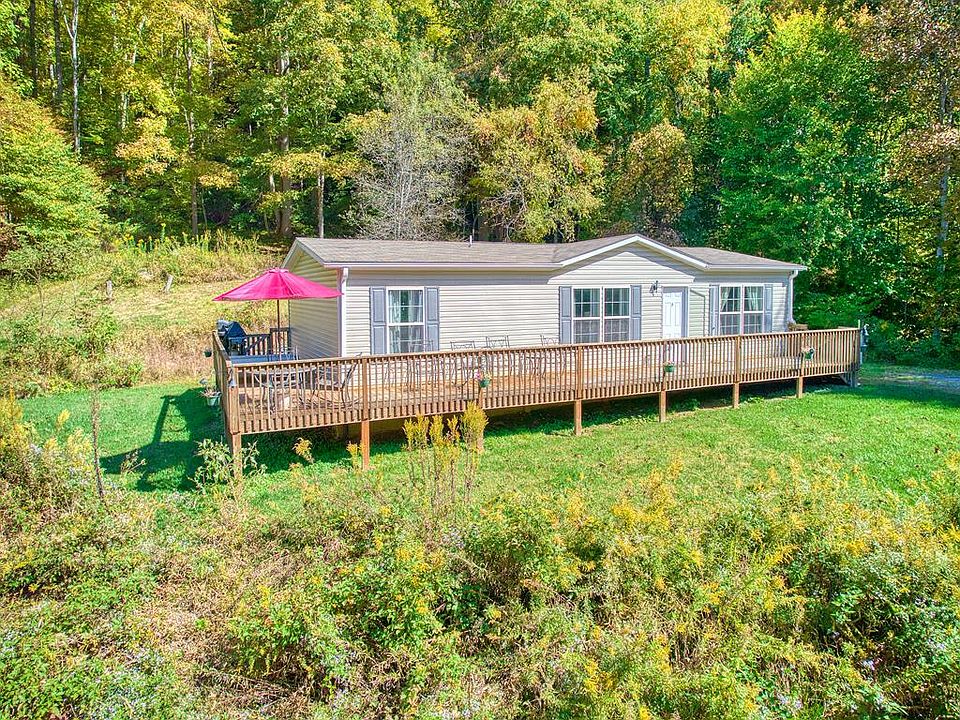 Peaceful, 5+ acres of privacy, with a combination of cleared and forested areas and a stream. The 3/2 home is in excellent condition and ready to move in. An open floorplan with a spacious living room, kitchen, dining, and breakfast bar with beautiful cabinetry and 2020 stainless appliances. Ample laundry room with space for storage/pantry. The primary bedroom includes a walk-in closet and a double vanity bathroom with a soaker tub. Well filtration system, 2020 Samsung stainless appliances, private drive maintained by the owner, underground power, DirecTV, ViaSat internet, fenced yard, fire pit, shed, RV's welcome, or place an additional home. 8 min to Max Patch, 20 min to Waynesville, 30 min to Asheville!