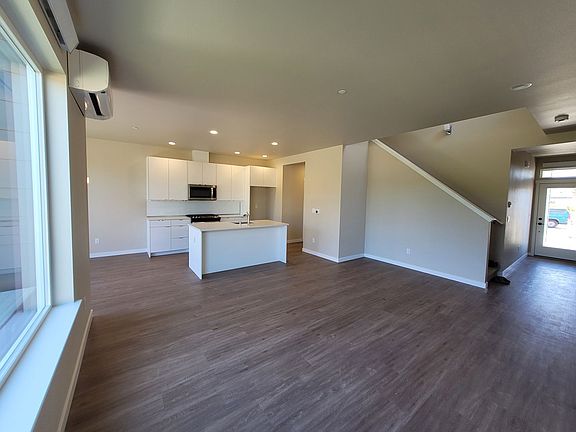 Beautiful home in a new neighborhood on the north side of Bellingham. This two-story home includes 3 bedrooms, 2 & 1/2 baths, and an attached garage. As you enter the home through the bright entrance hall you come into the open living room with large windows for lots of natural light and a mini-split on the wall providing AC for the area. The living room opens into the large kitchen with an eat-at island on the living room side and a dining area to the other that leads out into the fenced backyard and patio area. Kitchen includes a large gas range, microwave, dishwasher, and fridge. There is also a pantry and 1/2 bath off the kitchen on your way to the attached garage.