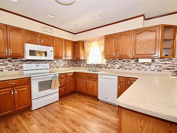 Want to be located out of city limits, where the deer roam the backyard and you can enjoy the view off of your back deck, and still be located less the five minutes from town? Come check out this 3+ Bedroom/2Bath Ranch, move in ready and super clean. This property is on approx. 1.89 Acres and offers a complete living quarters in the lower level with its own wood-burning fireplace, kitchen and more. Enjoy the main level updated kitchen w/custom cabinetry that walks out to a covered porch with an amazing country view. Two car detached garage with a work area. A big red barn sets in the large yard that backs to the woods.