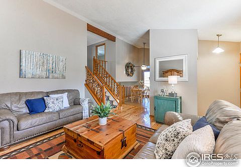 Don't miss your opportunity to own this meticulously cared for 3 bedroom, 2 bath home in north Loveland! Updates throughout include hardwood floors, custom tile, new carpet on the lower level, stainless steel appliances, a beautifully updated kitchen and full bath with radiant floor heat. The exterior has low maintenance siding and amazing landscaping, with concrete curbing, mature trees and a large rear patio. Don't forget about the fenced in RV/boat parking, a large shed, and brand new fence.