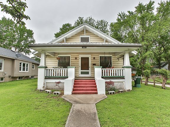 This classic home features original hardwood floors, french doors, and trim while having all of the desirable updates like new plumbing, electric and insulation. The all-season sunroom features solid wood paneling and large picture windows for a perfect view of the backyard with a small shed, fountain, and bird's paradise. The kitchen was recently renovated with new cabinets, backsplash, island and countertops. Walk-in closets in both bedrooms and new flooring in bathrooms. Large unfinished basement is perfect for storage, work area, and a storm shelter, but couldn't be used as living space. Refrigerator stays. Washer and dryer will stay with full price offer.