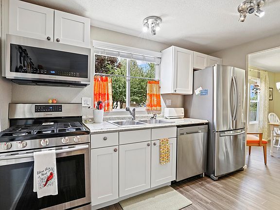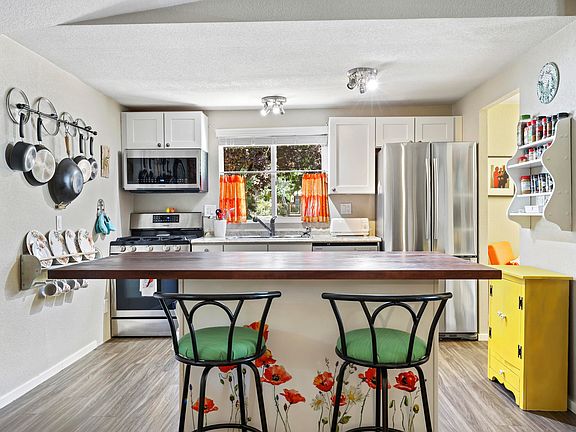 Beautifully updated home on a cul-de-sac! This 2 bedroom, 2 bathroom home features 1,152 sq. ft., laminate wood floors throughout, 2 storage sheds and a carport. The living room has vaulted ceilings, plenty of windows for natural light and an open floor plan. The kitchen has newer appliances, a pantry, breakfast bar and a kitchen island with beautiful a wood countertop. The master suite features a full bathroom, and the guest bathroom is also a full bathroom. The yard is fully fenced, has apple trees, and two covered decks for enjoying Payson's beautiful weather.