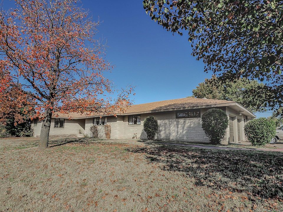 A ranch style opportunity ready for completion in your own way! Huge elevated, yet flat, corner lot! 2 bedrooms, 2.5 baths, two living w/over 2600 aq. ft. on one level! Its essentially a shell w/value in land. Roof & HVAC units not ancient! Beautiful white Oak Tree! Just east of Tulsa Country Club in Big Mansion Country! Selling AS-IS