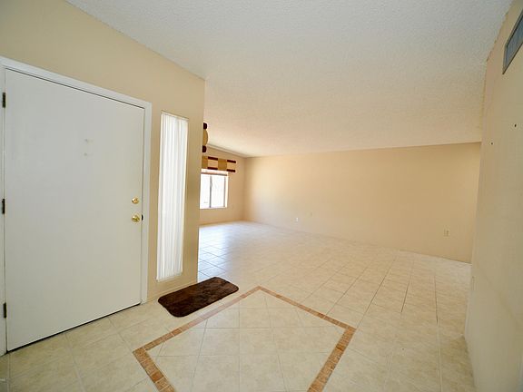 Beautiful corner lot with mature palm trees and landscape surrounds this 3 bedroom home with a great Mountain view from front patio.Cherry cabinets in the kitchen with stainless steel appliances, mostly tile throughout with ceiling fans and sky lights. 2 car detached garage with separate workshop/ storage area.The screened in AZ room is a prefect sitting area with water fountain, birds and beautiful greenery.Master bedroom is ample size with a bonus hobby area too... 3 closets- 2 reach in and one walk in.Home does not have GVR (its available) but the neighborhood offers: pool, spa, tennis, pickleball and shuffleboard courts, artist alcove, library, lounges, pool table plus more.