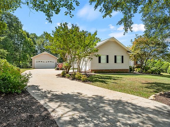 This well-kept, one-level 3-bedroom, 2-bath home is located in a quiet, desirable waterfront subdivision near Lake Hartwell and includes a DEEDED BOAT SLIP with electric lift, just a short golf cart ride away. Set on a fully fenced, beautifully landscaped 1.10-acre lot with NO HOA, this property offers plenty of privacy and space to enjoy lake living without restrictions. The home features approximately 2,000 square feet of functional living space with a smart split floor plan, hardwood floors, and a vaulted living room that enhances the open feel. A bright, heated and cooled four-season sunroom adds year-round versatility and natural light. The kitchen has been updated, and recent improvements include a new roof (2025), fresh paint throughout the home and garage, and a new vapor barrier in the crawlspace. In addition to the attached 2-car garage, there is a detached 2-car garage with a 20x10 workshop—perfect for hobbies, storage, or additional workspace. A partial home generator is included for added peace of mind. Located in a quiet neighborhood just minutes from I-85, this home offers convenient access to both Greenville and Atlanta, and is only 5 minutes from local shopping and dining.