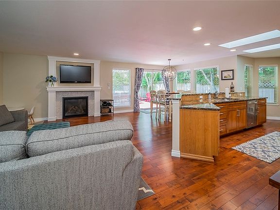 Sweetheart of a home tucked back in established neighborhood near Old Town Mukilteo. Easy one level living with hardwoods throughout and several updates in recent years. Slab granite countertops with counter bar and stainless steel in kitchen. Wide open concept with dining and living space with gas fireplace. Stunning remodel in master bath. Out back is a spacious deck and large grassy area. 2 car garage & RV Parking. Easy drive to Boeing, the Mukilteo beach/ferry and restaurants!