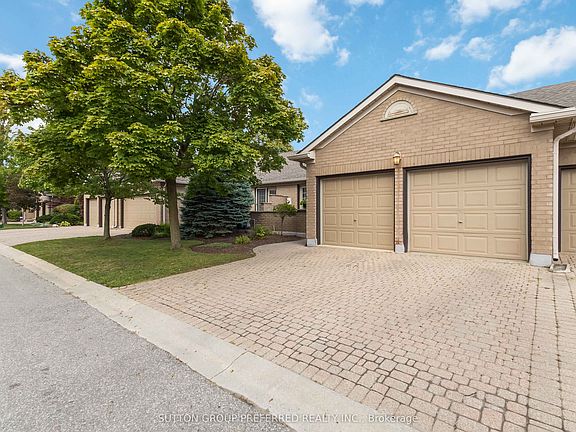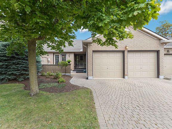 Welcome to stylish bungalow living in this 2+1 bedroom, 3 full bathroom condo, blending comfort, accessibility, and thoughtful updates. Quietly tucked away near major amenities, the home features a double attached garage with parking for four, a covered front porch, and a private courtyard that set the tone before you even step inside. The bright eat-in kitchen offers generous cabinetry, plenty of counter space, and a built-in desk nook. The open dining and living room are filled with natural light, highlighted by a cozy corner gas fireplace and walkout to the rear deck perfect for quiet evenings or entertaining friends. The main floor is complete with convenient laundry, two bedrooms including a spacious primary suite with custom walk-in closet and private ensuite, plus a second full bath with a sleek zero-clearance glass shower. The lower level is a true retreat, featuring a South American inspired rec room with a full bar, built-in cabinetry, fireplace surround, and included TV. Warm and inviting, its a space that feels both unique and perfect for hosting memorable gatherings. A third bedroom and full bathroom make it ideal for guests, while a bonus fitness room, workshop, and abundant storage add flexibility. Recent updates include a new furnace, modern light fixtures on the main floor, and fresh paint throughout. Move-in ready and full of character, this bungalow offers a lifestyle as easy as it is enjoyable.