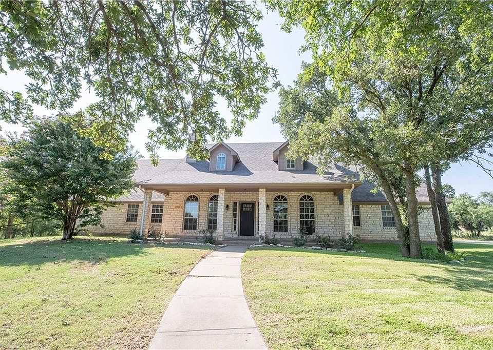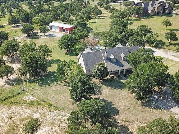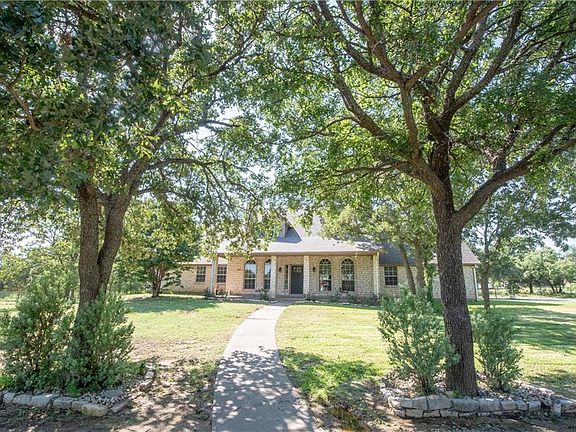 Hard to find 6.4 acres in highly sought after Brock ISD. No HOA, horses welcome! Through the automatic gate follow the road to a custom built stone home set back off the road and surrounded by shade trees. The kitchen boasts a huge walk in pantry, lots of storage and open concept into the living and dining room. The 2nd living room could easily be used as an office, game room or 4th bedroom complete with closet. The back yard is an entertainers dream with a pool, hot tub and a very large covered patio perfect for summer days. Enjoy the 24x74 shop with electric and plumbing for all of your storage needs. Brand new roof and currently Ag Exempt. Easy commute 3 miles from I-20