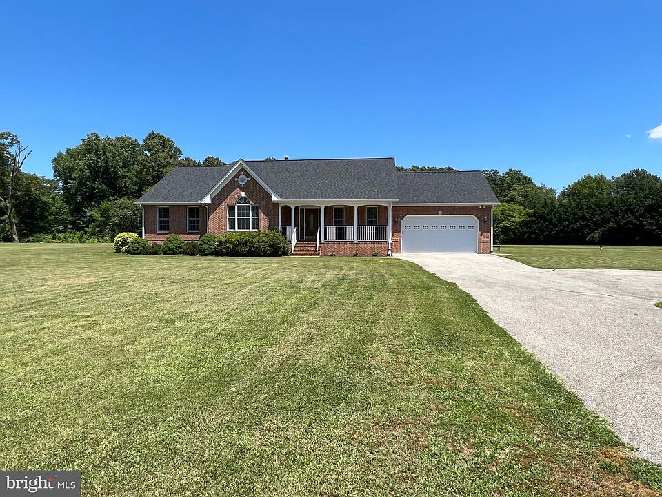 You are going to love this custom-built, all-brick ranch with fully finished basement, two-car garage, brick front porch, gorgeous covered back porch, and numerous other amenities. On 3 quiet acres in centrally located Hughesville, MD, there is lots of space for robust family life, both indoors and outdoors. Large living room, family room, and yard for gathering the entire clan, with large spacious bedrooms for privacy when needed. Designed for multigenerational living, most major features are on the main floor. The main level has the primary bedroom with ensuite bathroom (whirlpool tub, shower, dual sinks, and skylight) and large walk-in closet (with pull-down attic access). Also on the main level, you have two additional bedrooms; one with two closets and stunning windows and the other with one large closet. There is another full bathroom, large living room with beautiful windows and French doors leading out to the porch and the huge backyard. There is a kitchen with an island and lots of cabinet space, separate dining room, laundry room with washer, dryer and laundry tub, and large pantry with shelving covering three walls. Staircase from the foyer leads down to the oversized family room, two very large bedrooms (each with large walk-in closets and seating areas), large storage room, bathroom with shower, two utility closets, and a den/multipurpose room with large closet (media room, school room, office, whatever you like!). Basement has stairs outside leading to the huge backyard, which is perfect for family barbecues and tossing around the ball (certainly enough room for a pool, if desired). This lovingly maintained home is now for sale for the first time by the original owner. New roof in 2018; central a/c replaced in 2021. Well and septic tank. Convenient Charles County location: short distance to Calvert, St. Marys, and Prince Georges counties, as well as a five-minute drive to the commuter buses that go to DC