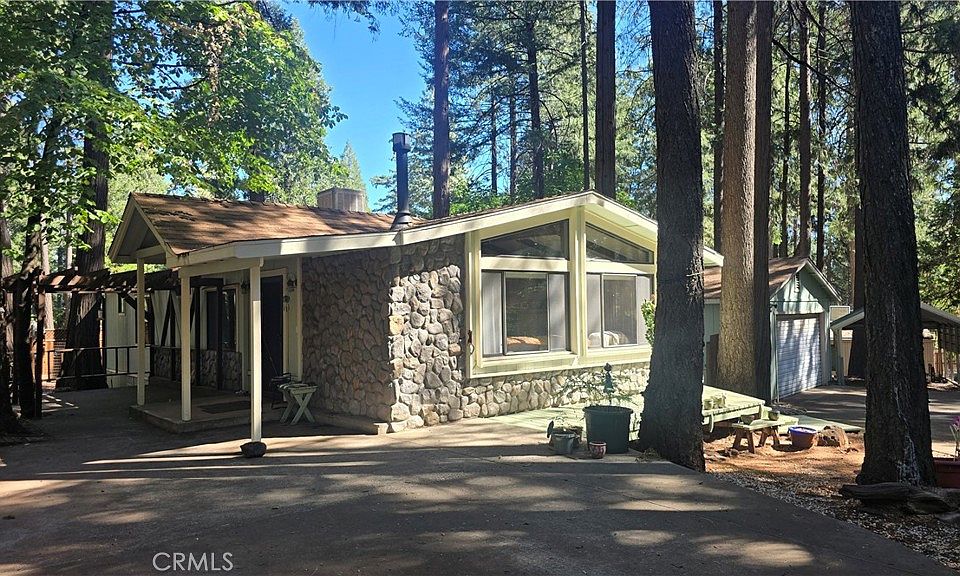 QUIET CUL-DE-SAC LOCATION WITH FULLY FENCED & GATED YARD! Large end of courtyard offers an Oversized 24x30 Garage and has a covered walkway from the house to the garage, plus a metal carport & 2 storage sheds with Plenty of RV Parking! The yard is cross fenced with a dog yard and has a great covered back porch too! Custom rock work adorns the front of this home and a covered front porch & extended patio with pergola offers wonderful outdoor enjoyment! Inside this home boasts a full wall of floor to ceiling windows in the living room that brings in tons of natural light, vaulted ceilings and a gas fireplace in the large living room. The floor plan is spacious & open with the living room flowing seamlessly to the dining room and kitchen. The kitchen has custom cabinets and ample storage & countertop space plus room for a eat-in kitchen nook. The master bedroom has daylight windows at the ceiling, full wall closet and sliding glass door out to a private, covered balcony deck. The large ensuite bathroom has another daylight window, lots of counter space & storage plus a walk-in shower with a custom etched glass door! There is a guest room & hall bath with full tub/shower enclosure, inside laundry/utility room, enclosed outside laundry room off back porch for those that don't want the laundry in the house gives you 2 options. As part of the Paradise Pines Homeowners Association, you’ll enjoy exclusive access to a wide array of amenities: pool, spa, pickleball, basketball, bocce ball, hiking trails, children’s playground, clubhouse with full kitchen and lounge, plus community events and rental options for your own celebrations. For outdoor enthusiasts, the location is unbeatable—just a short drive to Paradise Lake, DeSabla Lake, Lake Oroville Marina, and the Feather River, along with miles of hiking, biking, and off-road trails. Whether you love fishing, boating, snowmobiling, or simply soaking up nature, this home offers year-round adventure at your doorstep.