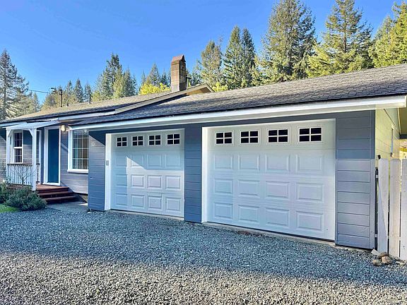 Welcome to this beautifully renovated and thoughtfully designed home nestled in a quiet country setting within the desirable Redwood School District. This move-in-ready home offers modern upgrades, character, and functionality on nearly an acre of picturesque land featuring redwood trees. Inside, the home has been completely updated to combine style and practicality. The custom kitchen features solid surface countertops, stainless steel appliances, an apron-front sink, a gas range, a pull-out floor drawer perfect for storing cookie sheets, and a pull-out kitchen step stool for added convenience. The spacious primary suite boasts a walk-in shower and a double vanity with custom concrete countertops, creating a luxurious retreat. Additional updates include hardwood and luxury vinyl floors, a beautiful hall bath with a deep garden tub and custom tile, and a tankless water heater. Stay comfortable year-round with a new efficient ductless heat pump and the cozy warmth of a wood stove. Enjoy clever storage solutions throughout, including a cordless vacuum broom closet, deep upper hallway cabinets, a large bathroom storage cabinet, and rolling barn door medicine cabinets. The exterior features fresh paint, new gutters, and updated garage doors, as well as a new roof installed in October 2017. The property includes mature apple trees, a 24' x 24' 2-car garage, a newer cargo container for additional storage, and two outbuildings. This serene property combines modern updates, creative functionality, and the beauty of a peaceful rural setting.