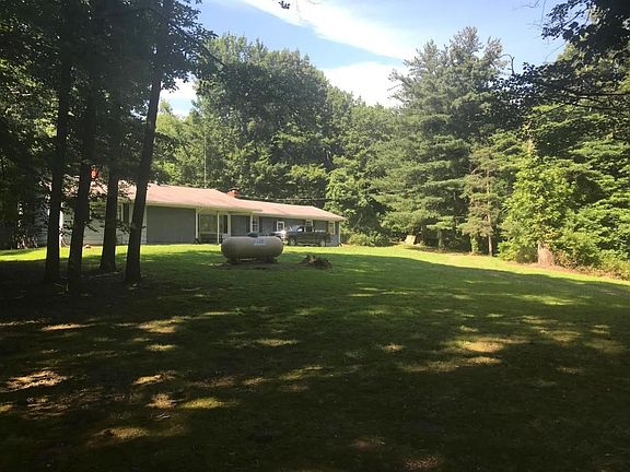 Country Living Ranch! Privacy galore! Solid built 1960 ranch on 21 wooded acres! Beautiful hardwood floors. 4 Bedrooms!!1 FULL bath, and a half bath that Jack and Jills off the master and kitchen. This home has a wood burning stove in the front room, and a fireplace in the large family room. Large attached 2 car garage and covered front and back porches. Large front lawn, and is surrounded by wooded acres. Huge basement, LL laundry. Walls are straight as an arrow. New Hot Water heater, New water pressure tank. Home needs a few updates to make it your own, but this is a solid built home.