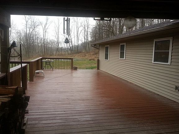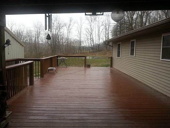 Located 1 1/2 miles from Ohio River this home is situated on over 3 acres with pond. Huge deck across the entire house gives a great view of the acreage and pond. House has open kitchen and living room area with2 bedrooms. Large 30x40 3 car garage and workshop with lean to on side.