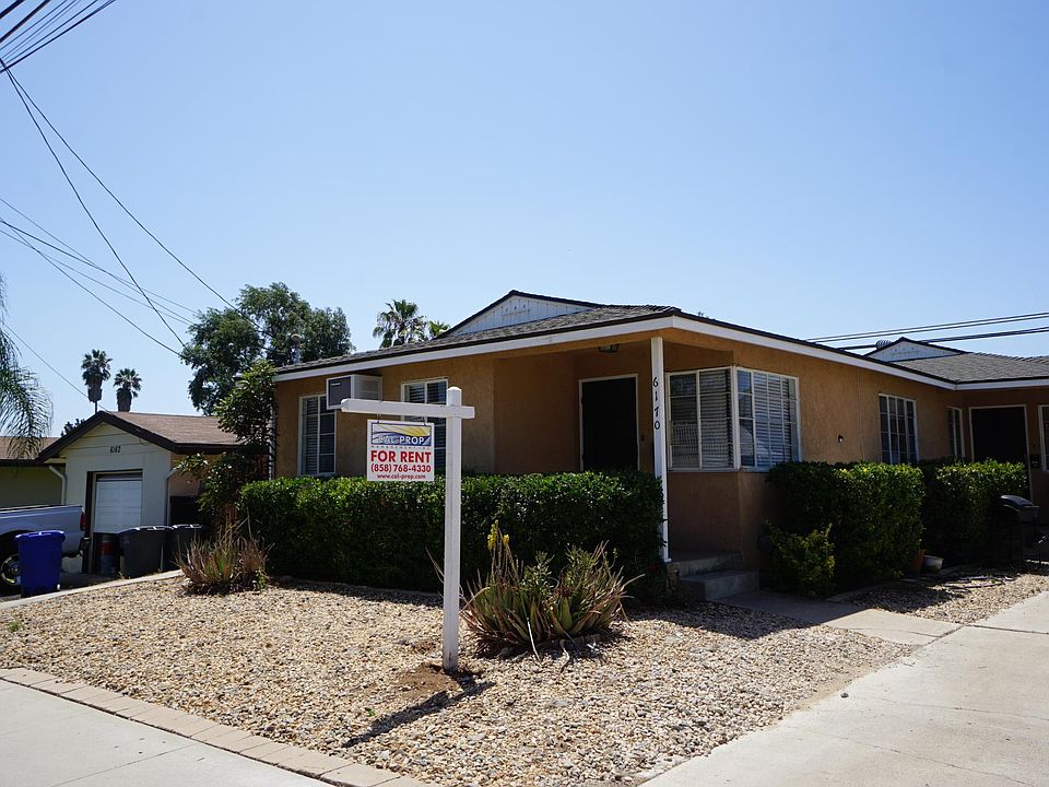 6170 W. Manor Drive La Mesa, CA 91942 $1,690 Available: 1/26/2022 Description La Mesa, Duplex one bedroom, charming location in a residential area, open floor plan, short distance to trolley at Amaya and 1 block to neighborhood park. A/C. No pets, no smoking. Tenants pay for trash through EDCO. Apply at cal-prop.com Key Features * 1 Bedroom 1 Bath * 600 Square Feet * Parking: One Off Street Assigned * Air Conditioning Wall Unit Appliances * Stove * Refrigerator Lease Details * Lease Term: One Year * Deposit: $1,690 * Pet Policy: None Allowed * Laundry: On-Site * Utilities: Gas & Electric paid by Tenant * Water: Paid by Owner * Furnishings: Unfurnished * Property Type: Apartment Contact Additional Information Please drive by the property first and then email or call for an appointment. We show properties Monday through Saturday from 10 am to 6 pm. Application fee of $40 per adult. Pre-Qualify yourself: Please have 3 times the monthly rental amount in income and a FICO score of more than 650. CA DRE lic # 01172817 Address: 4406 Bayard St, San Diego, CA 92109