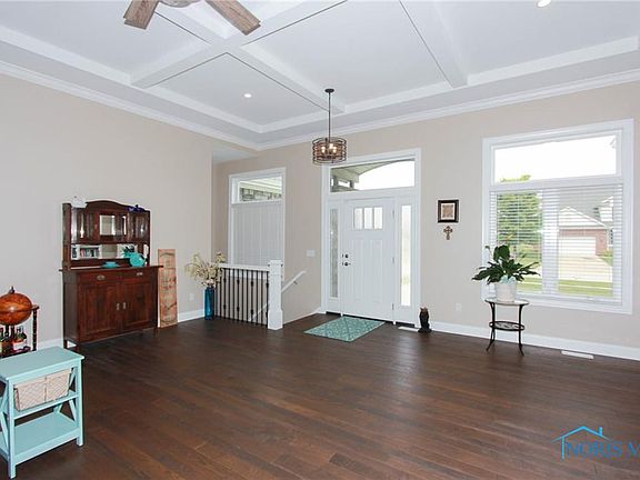 Spectacular soft contemporary split ranch home in Sylvania. High quality workmanship through out. Dynamic arched entry and foyer. Home features an open floor plan. Great room with a unique electric fireplace, custom book shelves, beamed ceiling open to kitchen and dining area. Kitchen features granite counters, bar area, pantry, and appliances. Sunroom with a gas fireplace and window to great room. Large master suite with double panned ceiling with under lighting, bath includes double vanity and rain shower. 3/4 open basement, Huge fenced in yard, lovely landscaping.