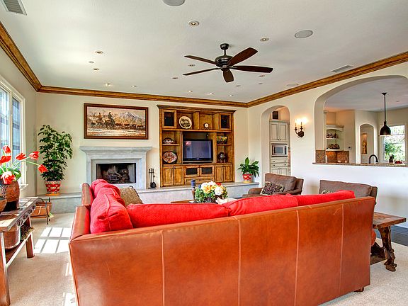 The gated enclave of Las Villas is the peaceful setting of this stylish, single level, view-oriented home. Rich, hand-scraped, wide-plank hard wood flooring, Lutron digital lighting, Michael Ferrante light fixtures, vintage timbers and stone-clad walls are just some of the dramatic designer features found in this customized residence.Four generous en-suite bedrooms include a sophisticated master bedroom with lavish bath and two walk-in closet. The private dining room, with its 2700 bottle wine cellar designed and built by Vintage Cellars and outdoor patio with fireplace, will elegantly transport your dinner guests back in time. The open kitchen with walk-in pantry and informal dining area is adjacent to a comfortable family room that features a fireplace and a wall of windows that frame the view. The lush rear yard and infinity edge pool deck provide for year-round entertaining and is the ideal vantage point for outstanding South-West views. This home and property is beautiful by day and dramatic by night, allowing for entertainment and daily living in high style.
