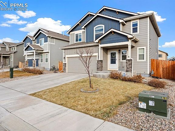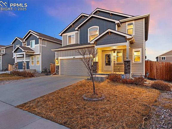 Pristine, updated home in Lorson Ranch blends comfort and convenience in a beautiful package for easy, economical living. Enjoy the new bright and cheerful updated kitchen with designer tile, gorgeous quartzite counters, a breakfast island, stainless steel KitchenAid appliances, under-counter lighting, and pull-out shelving for excellent storage. New flooring throughout, including new carpet upstairs, along with a new roof and new rear windows makes the home almost feel like new without new construction prices. Upstairs boasts four bedrooms, including a large master suite with dual vanity and walk-in closet, along with upper-level laundry and a small hall landing for a sitting area, homework area or a great place to put your books and games. Relax and enjoy the back yard with a concrete patio off the dining room, a new fire-pit, new retaining walls and planter boxes to develop your budding gardening skills. Filled with light throughout, with front-yard views of the mountains, this is a turn-key home with so many updates, you'll have nothing to do but enjoy your life.