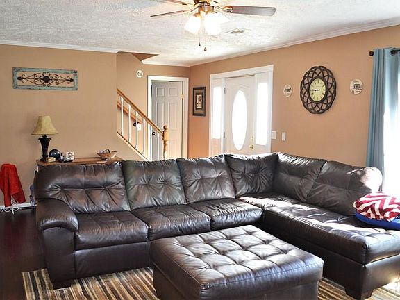 Beautiful 1.5 story home offers 3BR/2.5BA, and is situated on a sprawling, level lot. Impressive entry opens into the large living room featuring stone fireplace and built-in shelving. Spacious, eat-in kitchen has ceramic tile floor, ample cabinetry/counter space, stainless steel appliances and large pantry. Dining area opens to deck in back yard. Mud room, laundry and half bath are conveniently located just off kitchen. Main-level master suite has large walk-in closet and en-suite bath featuring garden tub, shower and ceramic tile flooring. Second level has two additional large bedrooms with large closets, full bath with shower/tub combination and loft area that makes a great media area. Lovely hardwood and laminate floors throughout living and bedrooms. Heat Pump and roof new in 2014.