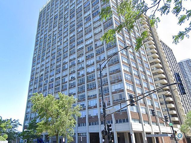 Highly sought beautiful open layout corner unit with tons of space and light largest 1 bedroom layout in the building. GREAT VIEW ! Plenty of closets and storage. Heat, water, basic cable, bike space, 24hr doorman, roof deck, 24 hr. laundry, fitness and sauna room . Steps to el, bus, lake, parks, shopping. $1195p/m without parking. Parking space $140p/m. no waiting list.