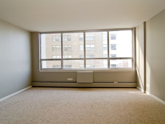 Completely upgraded 1 bedroom with sunny South views, can see Lake! Marble entryway, updated kitchen, and bathroom. Newer carpet and window treatments. Large unit, 800S.F. Heat & TV/Cable included in rent. This unit is as nice as they come! Available October 1st. No Pets, sorry.