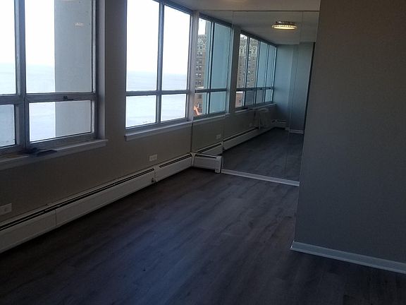 Studio condo with jaw dropping views of the lake and city. Beautiful wood look laminate floors, Kitchen has quartz counter tops and white cabinets. Soft grey paint throughout. There are three storage closets for all your things! Heat, water and basic cable are included in the rent. There is a roof top Sundeck, fantastic Exercise Room, Party Room, Laundry Room and Doorman. Steps from the Sheridan Road bus stop, a few blocks to the Granville red line stop or Loyola University. Enjoy living right at the lake and beach area!! Tenant is responsible for the electric bill and any internet or cable beyond the basic cable provided by the building. The building non refundable move in fee is $300.00 on a week day and $400.00 on a weekend. The building refundable damage deposit is $200.00. The Owner non refundable move in fee is $350.00. The non refundable credit check fee per adult is $40.00.
