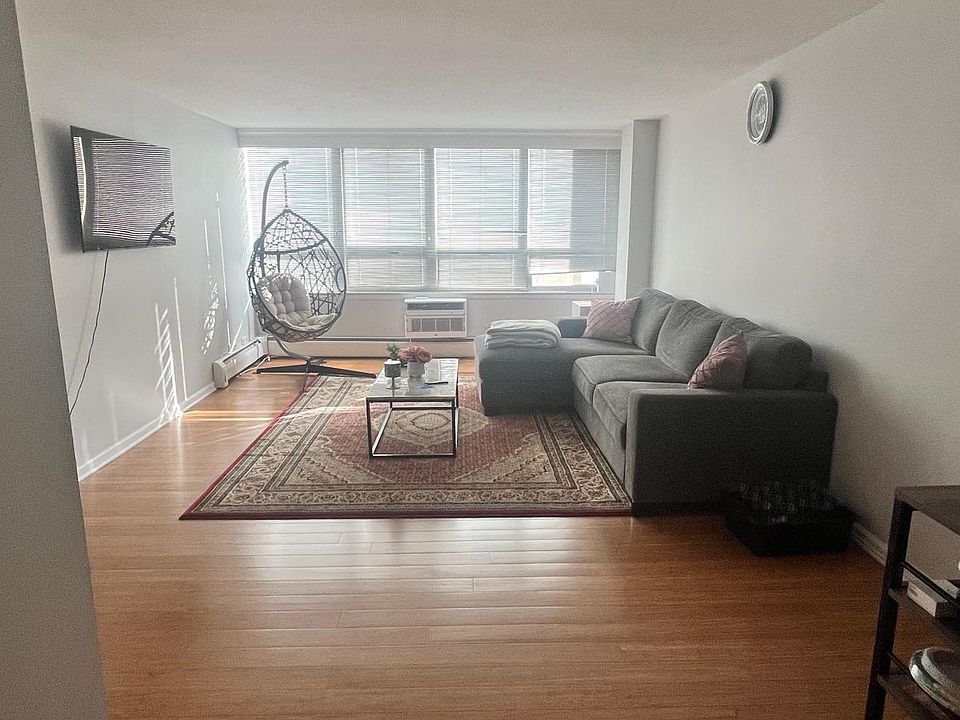Fully furnished 1-bed 1-bath apartment with lots of storage space. An on-site gym, deck, and event space on the top floor with an amazing. On-site laundry and storage space in the building. Preferably looking for a student or single young professional to rent. 2 minute walk to the bus stop or 6 minute walk to the Granville Red Line Train Station. Right by the infamous Edgewater Berger Park, lake, and cafes nearby. Be in the city without being in the city! Renter is responsible for utilities based on their usage. Renter is responsible for any maintenance required post-moving in. Parking is not included, renter must enroll in a waitlist with the building. Pets are allowed in the building, but we are not allowing pets in the apartment.