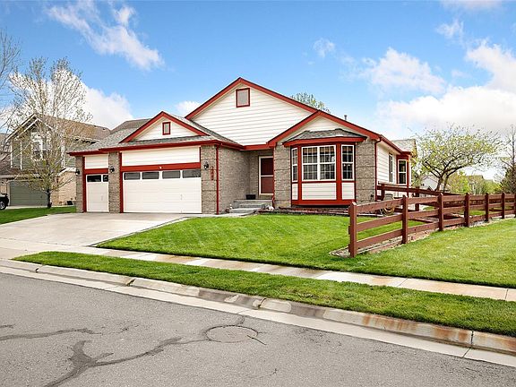 Fantastic location! You'll love this sprawling ranch home nestled on a corner lot that adjoins a lush greenbelt! The welcoming entry opens soaring ceilings, brilliant natural light and a functional, open-concept floor plan. The eat-in kitchen is well equipped with stainless steel appliances, tile countertops and plentiful cabinetry for your every storage need. Adjacent to the kitchen, the family room offers a cozy gas fireplace, built-in shelving and patio access. The spacious, main-level master suite features a luxurious en suite bathroom with heated flooring, double-sink vanity, marble tile and an over-sized tub. The expansive finished basement includes an office with french doors, two 3/4 bathrooms, a bedroom and two recreation areas with wet bars. Enjoy the large backyard with patio and pergola covered deck. **Optional Main Level Laundry hook ups available** Walking distance to Sunrise Ridge Park. See the 3D tour for more details!