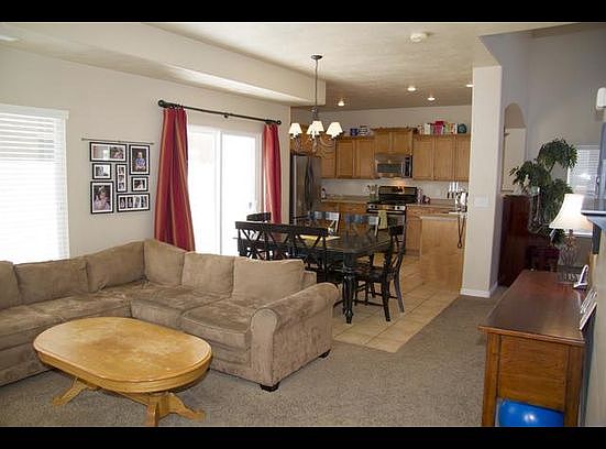 Reduced price 5K!! Beautiful and spacious! Bonus den or play area upstairs, new light fixtures and upgrades throughout: outdoor lighting, gas fireplace, stainless steel appliances, staggered kitchen cabinetry, gas stove, Bosch dishwasher, tile flooring in kitchen and bathrooms, recessed lighting, ceiling fans in all bedrooms, large patio off kitchen. Master bedroom has walk-in closet and sep. tub/shower. Entire home was recently painted. Washer and Dryer included. Walking distance to South Ogden Nature Trail, amphitheater, and splash pad. Great access to Weber State, HAFB, and local hospitals. HOA covers: water, sewer, garbage, snow removal, and landscaping of common areas. Small private fenced backyard. Wonderful community park with playground, volleyball, basketball and lots of green space to enjoy. Please no listing agents.