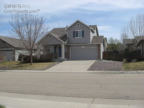 Light, bright and cheerful 2-story home in the popular Savannah subdivision located across from field/park for those fabulous mountain views to the west. Featuring an open floor plan with vaulted ceilings, a large kitchen with plenty of cabinets for storage, and master bedroom with a walk-in closet and bath. All appliances including washer and dryer stay. Main floor laundry and large backyard. Easy access to I-25, close to schools and Carbon Valley Rec Center