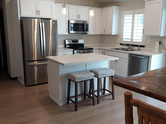 Why wait for new construction when this beautiful, move-in-ready home is fully finished and upgraded! Featuring the desirable Loffs Bay floor plan, this single-level, 1,245 sq. foot home offers a split-bedroom design with three bedrooms, two bathrooms, and a convenient laundry/utility room off the garage. The open-concept kitchen with an island flows into the vaulted dining and great room areas, making it perfect for entertaining, while the spacious primary suite includes a large walk-in closet, dual sink vanity, and walk-in shower. Thoughtful upgrades include full yard landscaping with concrete curbing, a fenced backyard, a front storm door, an upgraded electrical panel prepped for a hot tub, gorgeous white plantation shutters, and a furnace air scrubber for enhanced air quality. Enjoy neighborhood views from the covered front porch or relax on the private back patio. Ideally located near Hwy 41, this home provides easy access to Spokane, Coeur d'Alene, and Sandpoint, offering a perfect combination of comfort, style, and convenience.