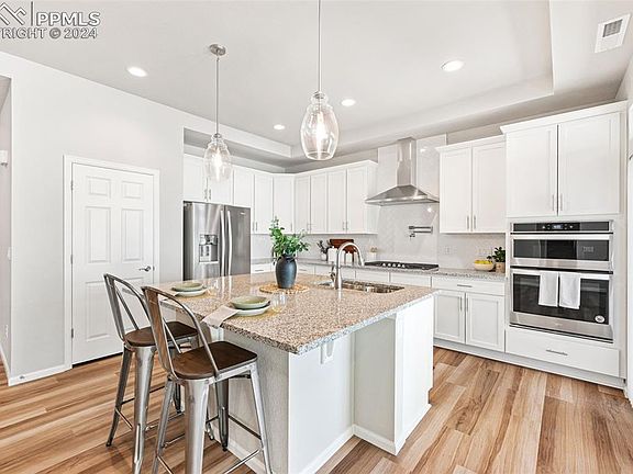 Welcome home to this beautifully maintained home in The Retreat at Banning Lewis Ranch! This home feels brand new! Low maintenance and main level living at its finest. Enter the home to a welcoming and open foyer that leads you into the open concept gourmet kitchen and living room! You will find luxury vinyl planking throughout! The kitchen has upgrades galore! A huge center island that allows for ample counter space as well and a space for people to sit. The kitchen features a beautiful pantry, gas stove top and a pot filler above for convenience! This home features two bedrooms. The primary bedroom is situated in the back of the home for amazing privacy. It features and stunning barn door that leads to the attached en suite and giant walk-in closet! The primary en suite features and upgraded spa shower and dual vanity. Right off the primary bedroom you will find the spacious laundry room that continues the trend of amazing convenience in this home. The second bedroom has a large closet and can be used as an office, guest room or whatever you need! Tons of natural light comes streaming through the big windows in every room creating a warm and inviting atmosphere. Enjoy some outdoor time on your covered back patio! The two-car garage provides plenty of storage and parking. This is not one you want to miss! This home has easy access to all of the fantastic amenities in The Retreat and allow for a comfortable lifestyle!