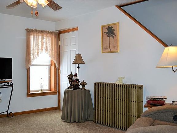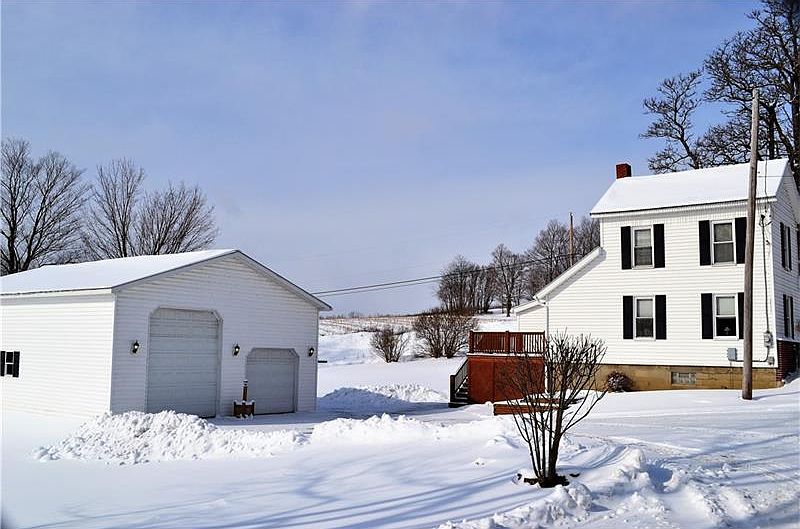 2 BEDROOM FARM HOUSE ON 1 ACRE LOT, WITH 2 BAY 30X40 GARAGE-HEATED FLOOR AND EXTRA STORAGE ABOVE. CHARMING BARN WOOD GALLEY KITCHEN, SPACIOUS 1ST FLOOR BEDROOM AND FULL BATH. 2ND LEVEL IS PRIVATE 2ND BEDROOM WITH LARGE WALK IN CLOSET. BEAUTIFUL CUSTOM SOLID OAK TRIM IN LIVING ROOM, AND SEPARATE DINING ROOM WITH LOVELY FRENCH DOORS. NEW CARPET IN LIVING/DINING ROOMS. EXTERIOR VINYL SIDING HAS BLUE BOARD UNDERNEATH FOR ADDED INSULATION. LAUNDRY, 3/4 BATH, AND BONUS WOOD BURNER IN BASEMENT WITH LOTS OF STORAGE AND ROOM TO WALK AROUND.