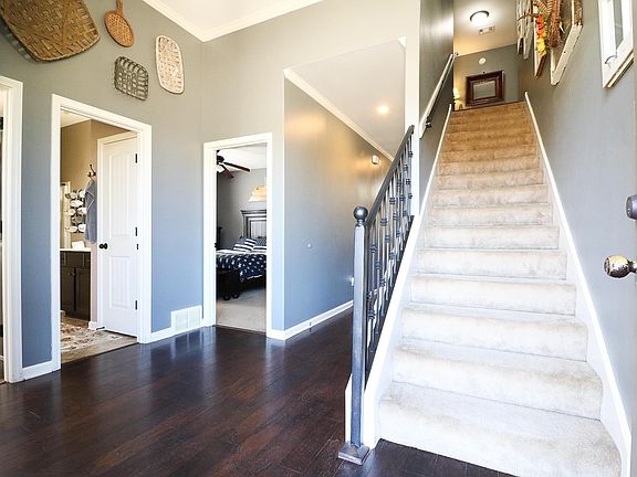 This amazing 5br + a bonus room features 3 full baths, 3brs down, 2brs + a bonus up ~ double entry front doors, gutter guards, storage shed in back, air ducts cleaned in 2021 with UV lights installed, new dishwasher in 2021, under cabinet lighting in kitchen & a neighborhood pool. The peaceful backyard backs up to woods for privacy. Backyard also includes a fireplace and covered patio with outdoor bar perfect for entertaining! Large primary bedroom with separate tub and stand up shower in bath.